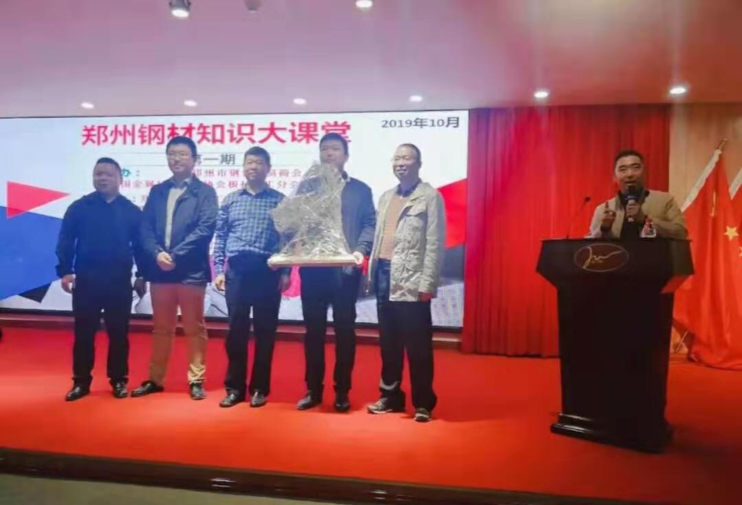 培訓活動中還穿插著有獎知識競賽環節,由鄭州阿達爾機電有限公司總經理王一召提供的鋼鐵藝術品,將培訓氣氛推向一個接一個的小高潮。鄭州鋼鐵貿易商會常務副會長任向軍、中金協板材加工分會副秘書長孫旭東也上臺向大家分享了從事鋼鐵行業的心路歷程與從業經驗。