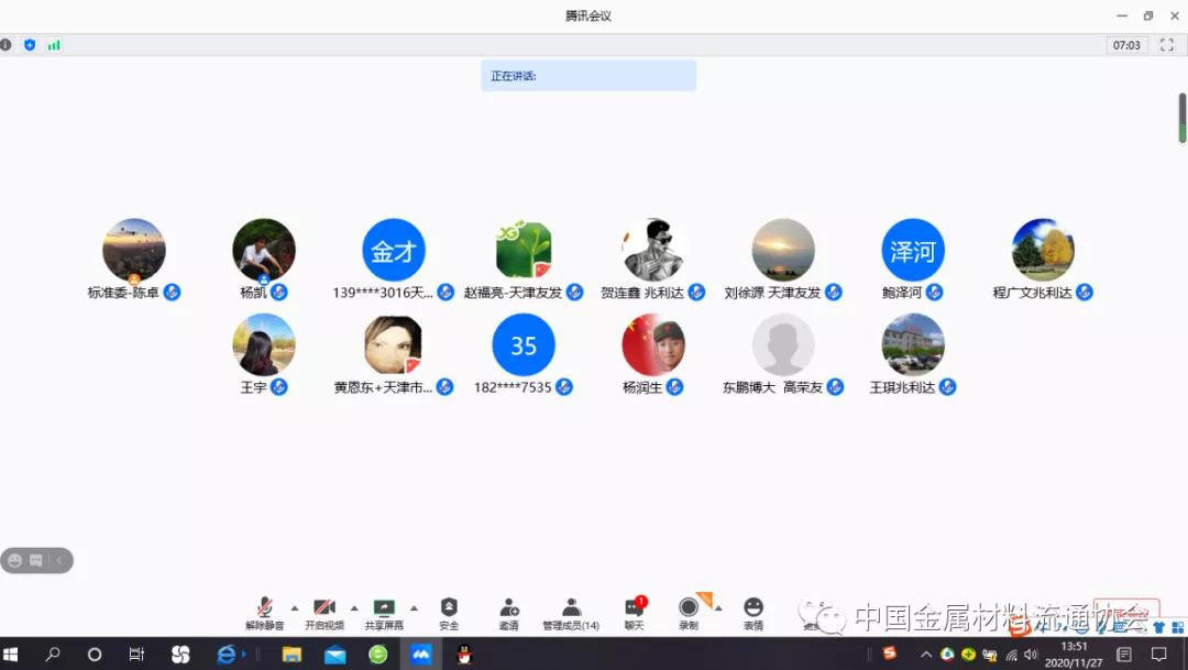 2020年11月27日下午,中國金屬材料流通協會標準化工作委員會在線上組織召開了《鍍鋅鋼帶焊接鋼管》團體標準第一次起草人會議,來自天津友發鋼管集團股份有限公司、天津市兆利達鋼管有限公司、天津天應泰鋼管有限公司、天津東鵬博大實業有限公司、天津昊大鋼管有限公司等起草單位近二十位起草人參加了本次會議。